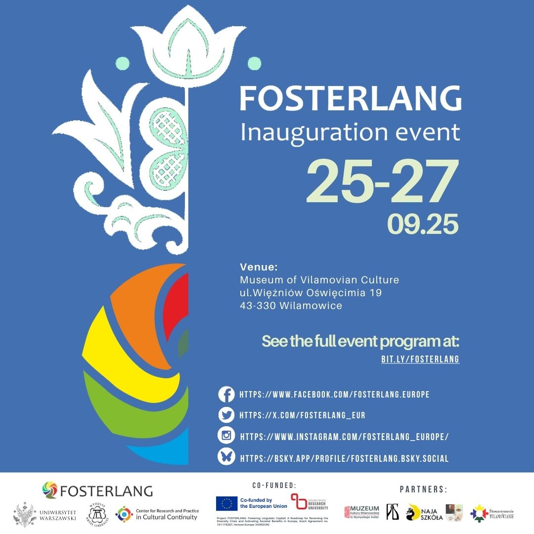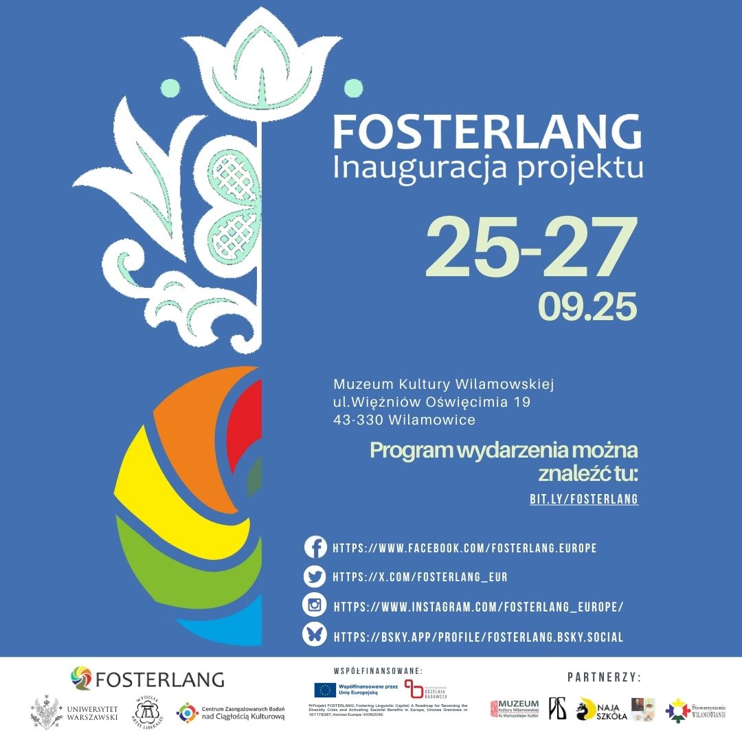 Zachęcamy do lektury relacji z inauguracji naszego projektu Fosterlang opublikowanej na stronie Uniwersytetu Warszawskiego: Inicjatywa na rzecz różnorodności językowej